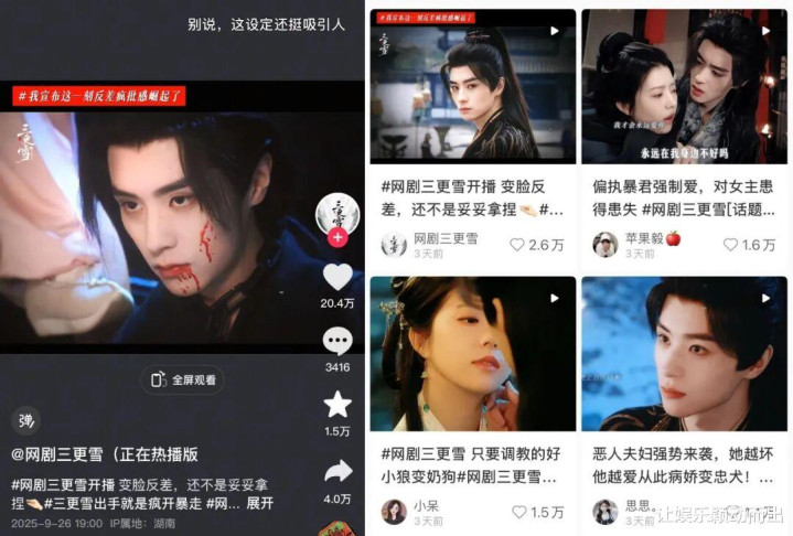 最近,由风芒出品、壹吉文化制作,周九钦执导的《三更雪》,为女频短剧带来了久违的讨论度与新鲜感。